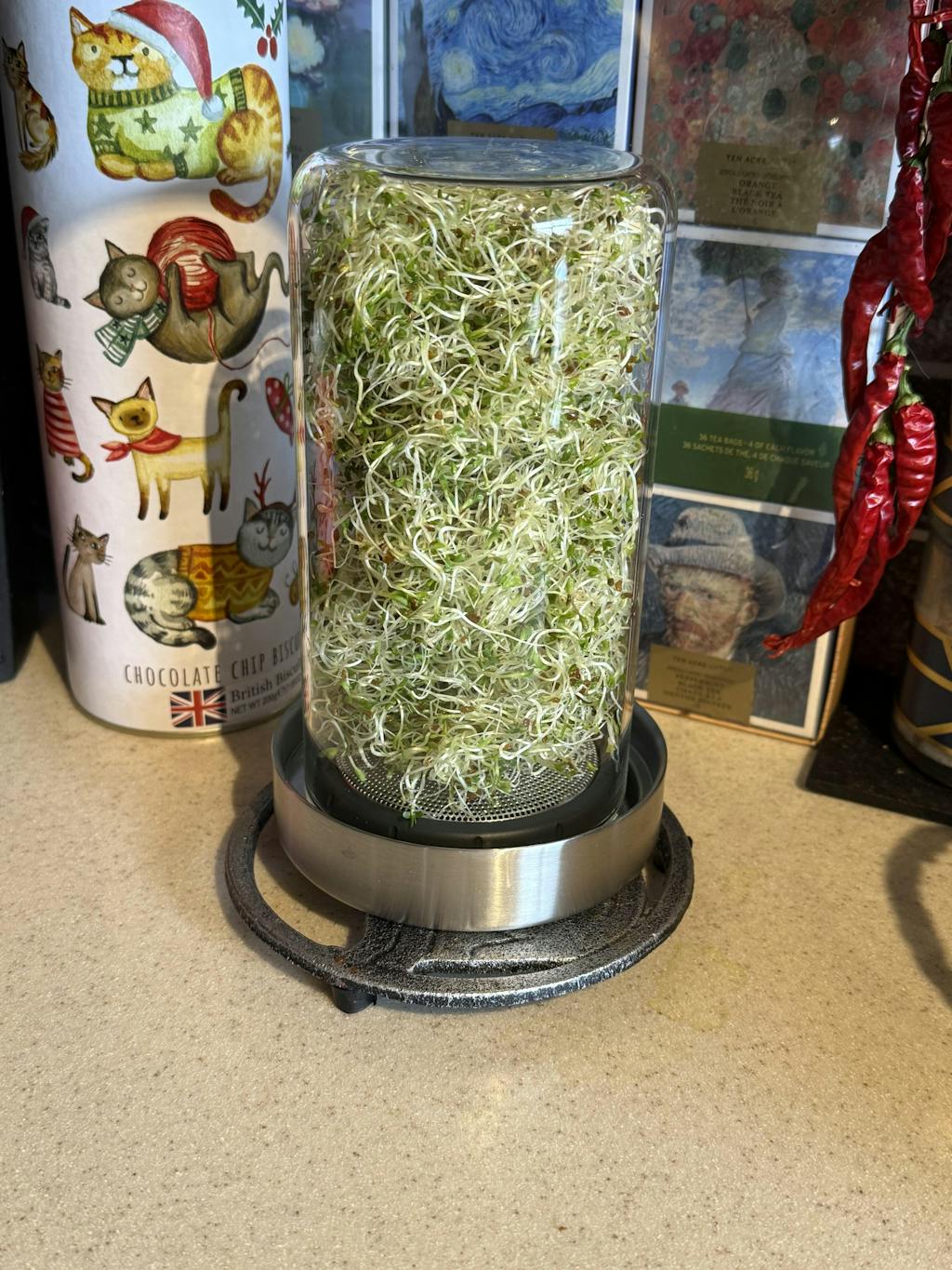 It's so easy and no mess, just takes seconds to start. Love it because it is so quick easy and fast to have tasty fresh sprouts all winter long.